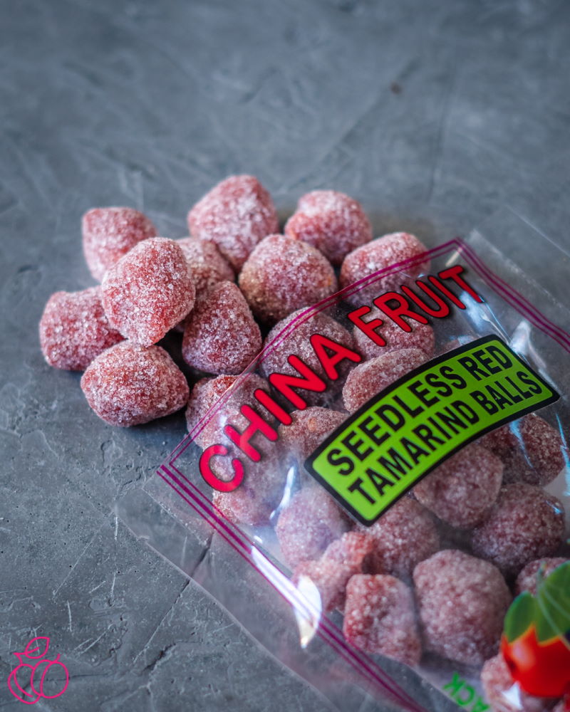 Red Tamarind Balls seasoned with a spec of chilli, simply delicious.